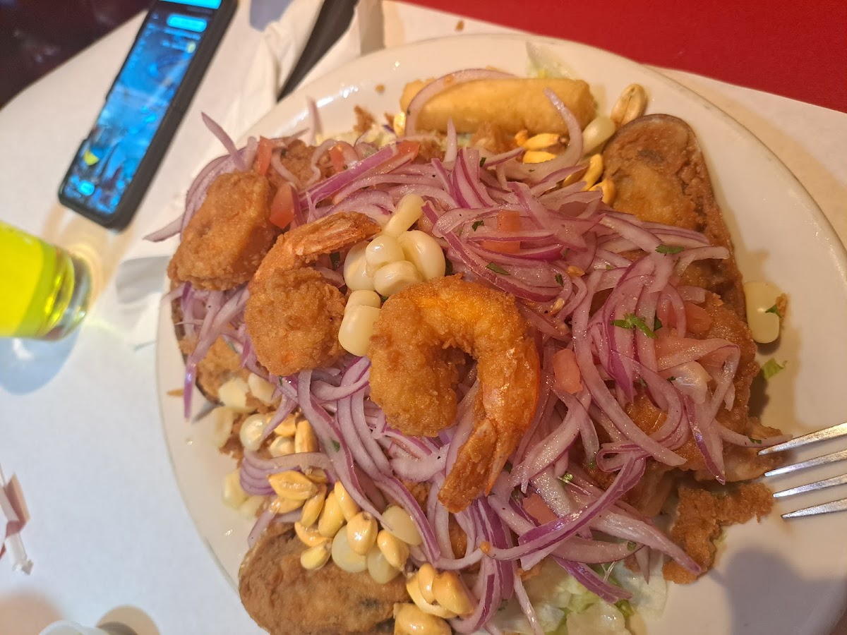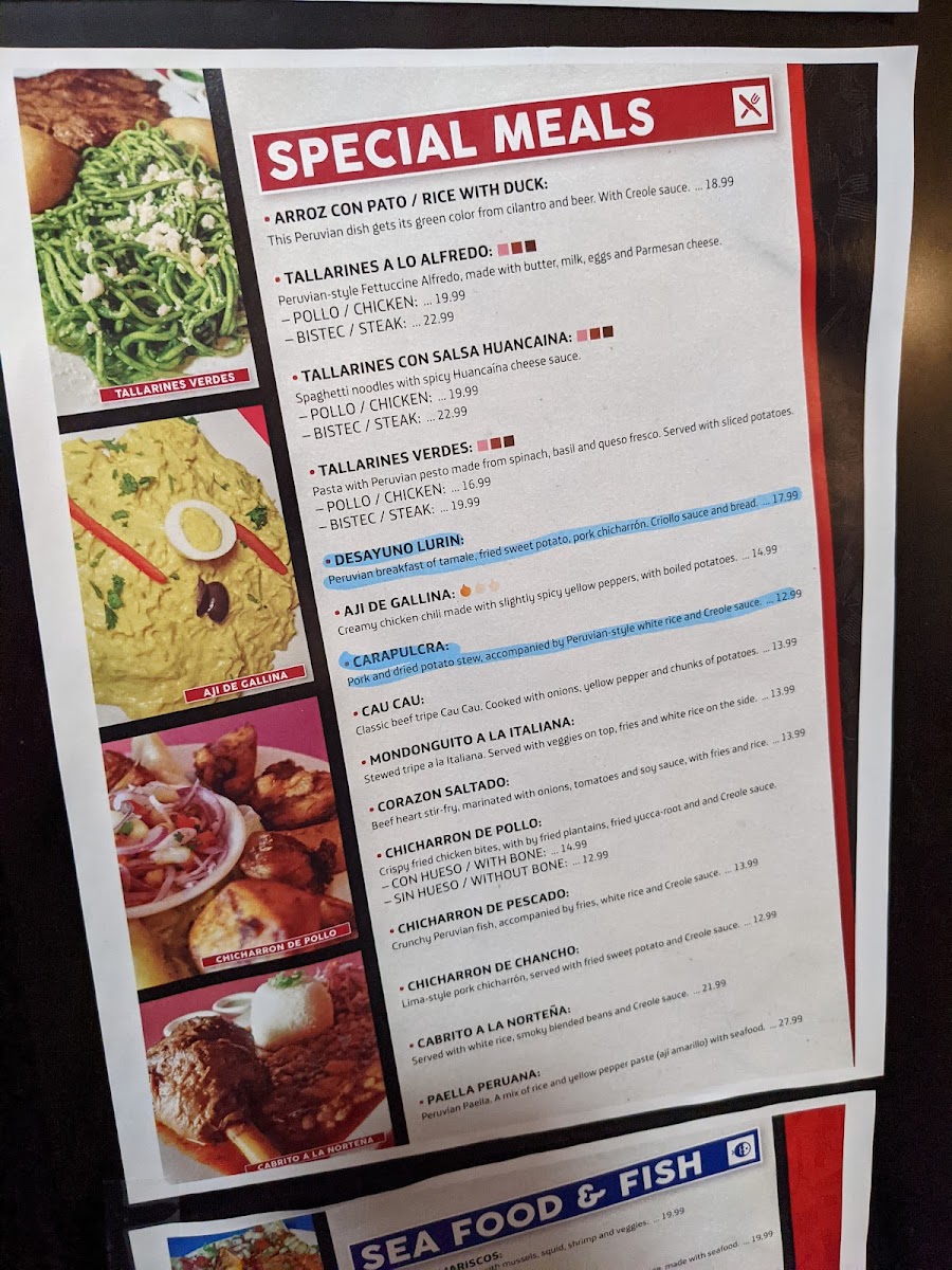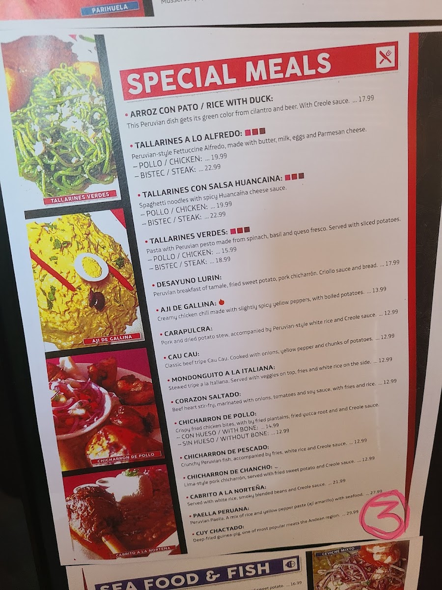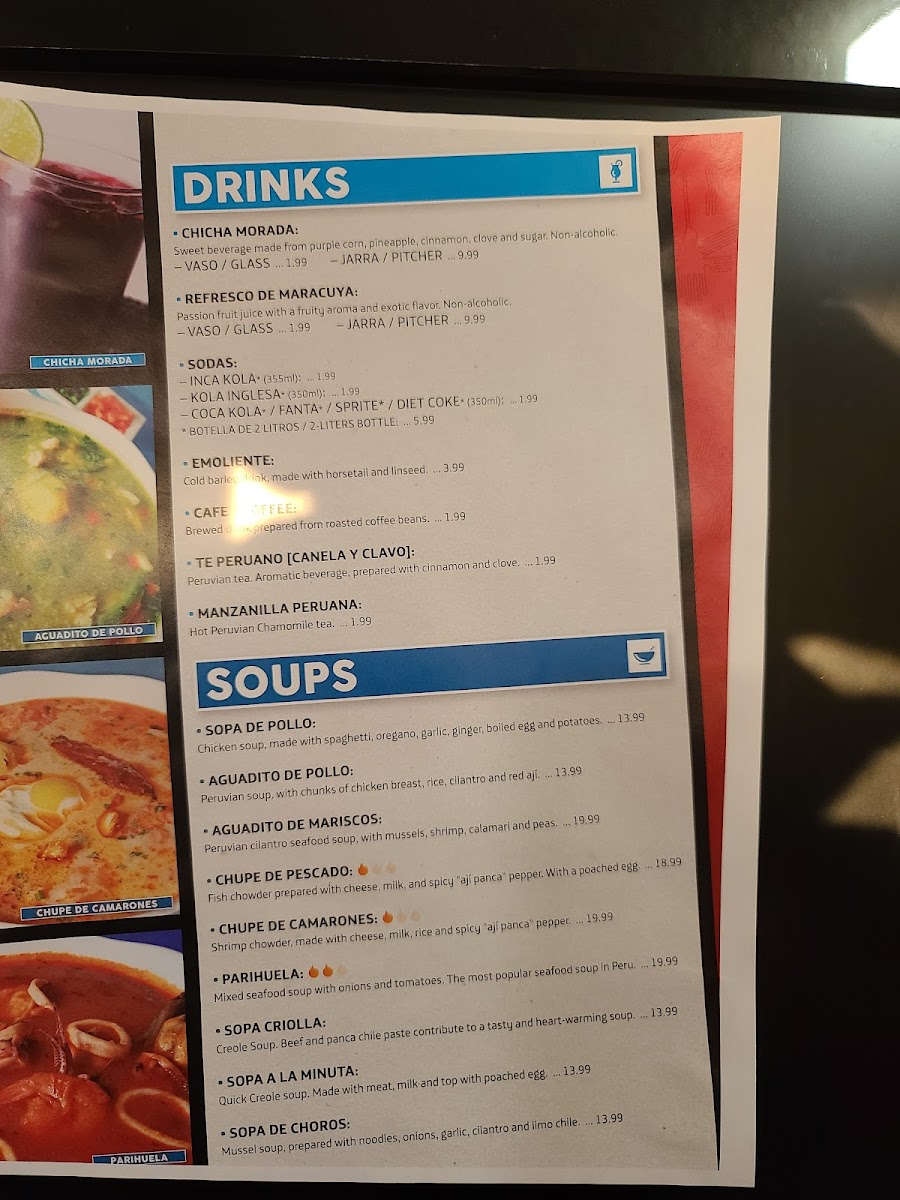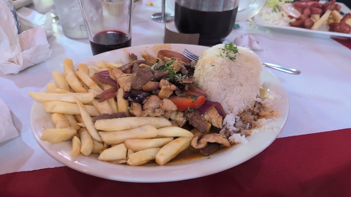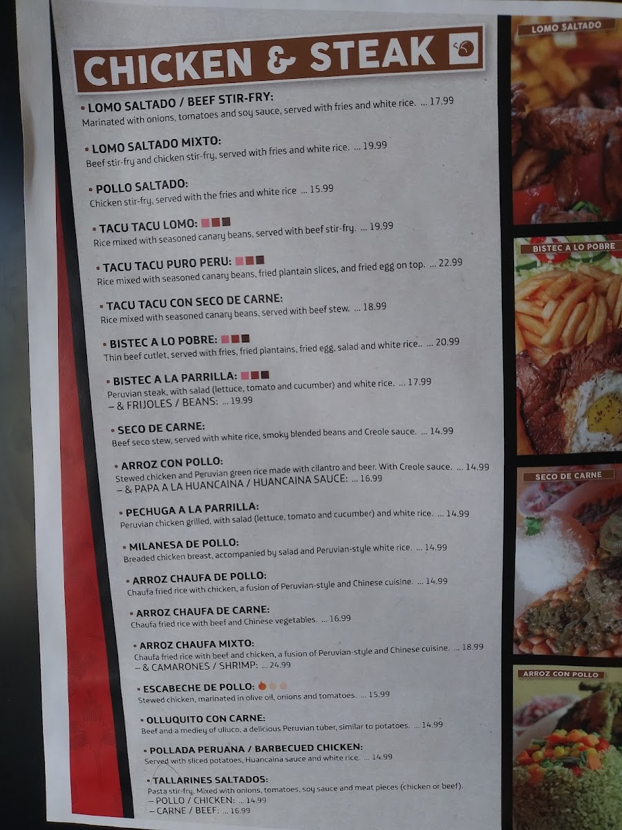 For the main event, indulge in the celebrated Lomo Saltado, featuring marinated beef stir-fried with onions, tomatoes, and a dash of soy sauce, served alongside perfectly cooked white rice. Priced at US$16.99, this dish encapsulates the essence of Peruvian flavor, layered with bold spices and a hint of sweetness. If you're feeling adventurous, try the Lomo Saltado Mixto, a tantalizing mix of beef and chicken stir-fried to perfection, served with fries to satisfy your cravings, priced at US$18.99.