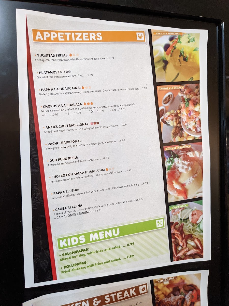 Puro Peru also caters to younger diners with a dedicated kids' menu, featuring favorites like Polli Papas - crunchy fried chicken with a side of fries and salad for US$9.99 and Salchipapas - sliced hot dogs paired with fries and salad for US$8.99. Each dish offers a delightful introduction to Peruvian flavors for the little ones.